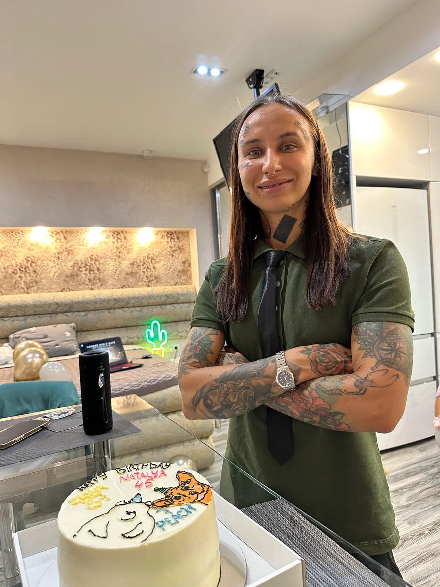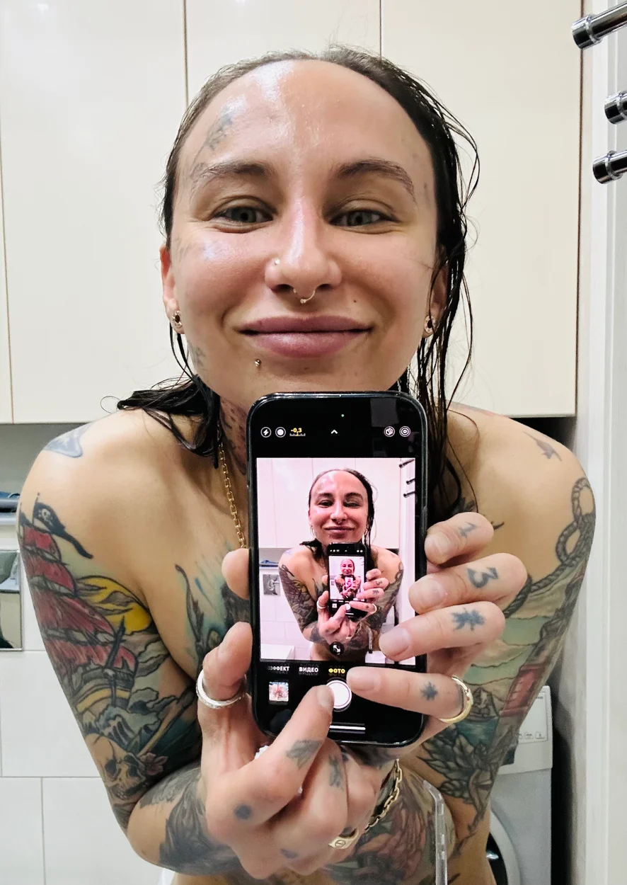 Every two months I have a week off because I remove tattoos from my face. It's a long and painful process and I don't despair) I imagine that I'm a famous boxer with a bruise under my eye and a victory) all week I smear my eyes and do sports)