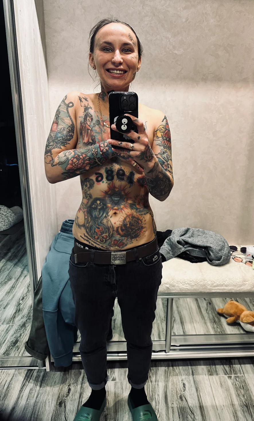 What do I love the most?! It's a tattoo on my body. But I want to refute the fact that they stay with us for life. I remove tired tattoos and make new ones instead. Some of your donations are spent with great pleasure on my tattoos. You are part of me, you are on my body, you are my whole infinite universe. I love you, thank you for being there.