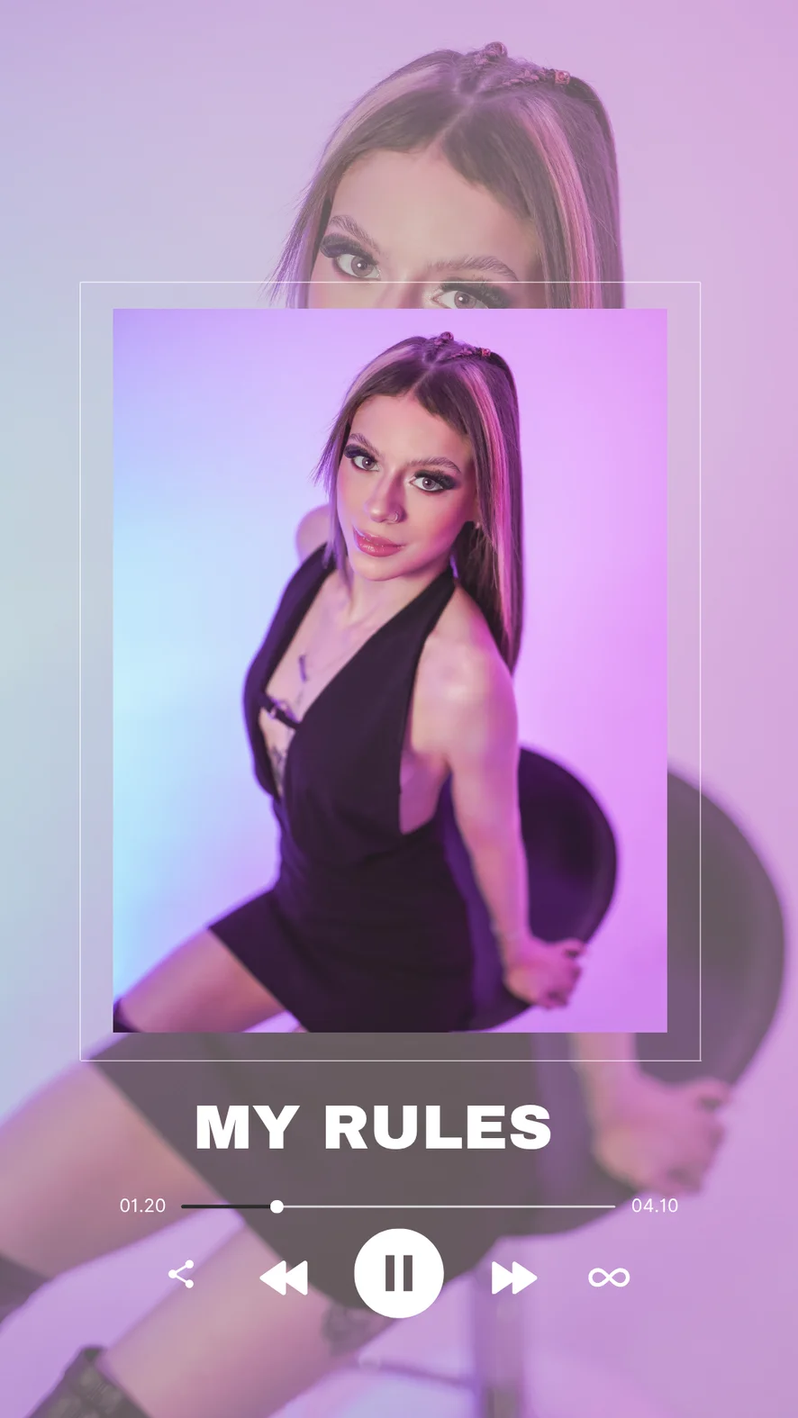In this space, sweet mixes with spicy. I love using sensual lingerie that makes me feel powerful and desired, and I'm fascinated by exploring different fantasies. Today I can be an innocent bunny, and tomorrow the most daring she-devil; it all depends on the rhythm of the music that accompanies me. My specialty is authenticity, which is why my most requested show is masturbation. It's my way of connecting with you from a genuine place, where submission becomes an invitation for a journey with no return. Here, the only rule is that there are no rules.